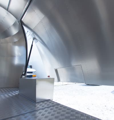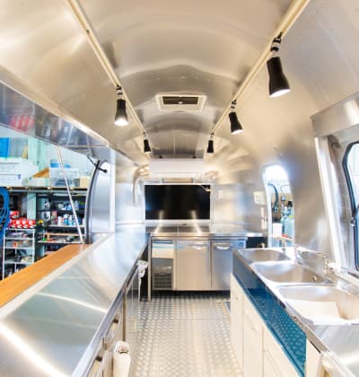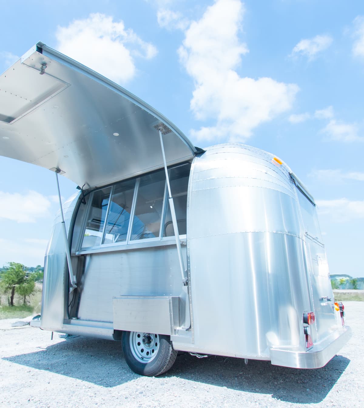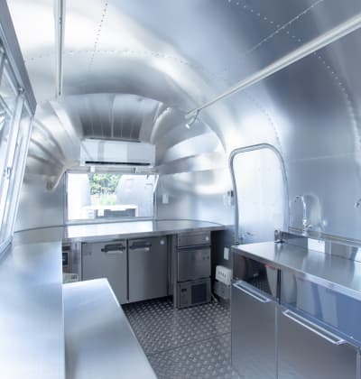 -    完全オリジナルのトレーラーシルバーのアルミパネルで覆われた車体は、洗練されたシルエットを生み出し、街を走れば注目の的となるでしょう。従来のトレーラーとは異なり、キャンピングやイベント、 移動店舗など多様な用途を想定しているため、あらゆる環境に対応できる機能を備え付けることができます。 飲食用の厨房器具や窓の取り付け、フルオープンのガルウィングなど、用途に合わせたカスタマイズが可能なため、他には無い特別な1台を作り出せます。