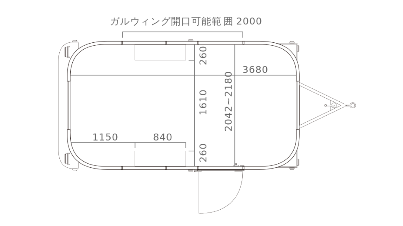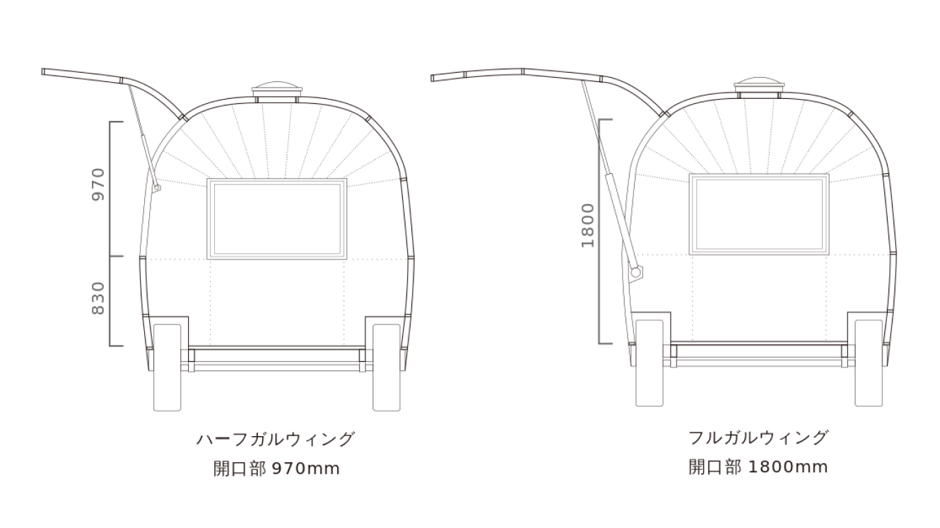 スペースはキッチンカーやアドカーとして製造されているため、あらゆる環境に対応できる機能を備え付けることができます。 飲食用の厨房器具や窓の取り付け、フルオープンのガルウィングなど、用途に合わせたカスタマイズが可能なため、他にはないオリジナルの1台を作り上げることができます。