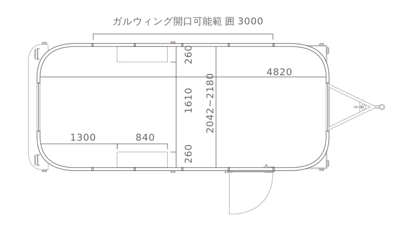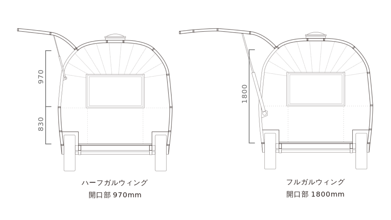 スペースはキッチンカーやアドカーとして製造されているため、あらゆる環境に対応できる機能を備え付けることができます。飲食用の厨房器具や窓の取り付け、フルオープンのガルウィングなど、用途に合わせたカスタマイズが可能なため、他にはないオリジナルの1台を作り上げることができます。